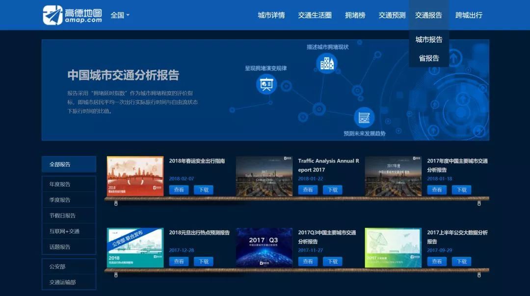 5)交通報告,通過高德地圖交通大數(shù)據(jù),我們可以輕松從網(wǎng)站上面,下載到城市或者省份對應(yīng)的交通報告,如下圖所示: