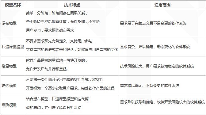大致列舉部分常用軟件過(guò)程模型的特點(diǎn)和適用范圍: