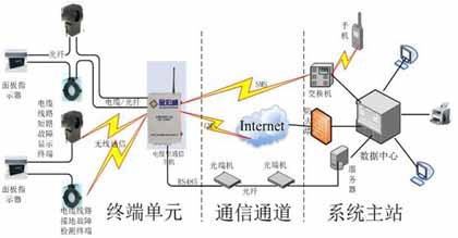 該系統(tǒng)能快速準(zhǔn)確的在線檢測接地故障、短路故障、停送電、線路負(fù)荷、溫度等信息,并將所采集到的特征信息發(fā)送到系統(tǒng)主站。系統(tǒng)軟件進行數(shù)據(jù)分析、告警顯示、告警短信轉(zhuǎn)發(fā)、故障統(tǒng)計檢索和查詢等,引導(dǎo)工作人員迅速準(zhǔn)確找到故障點,為提高工作效率、減輕工作人員勞動強度提供了一種強有力的手段,能有效提高配電線路故障檢測的自動化和現(xiàn)代化水平。