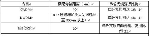 針對光纜資源緊張的現(xiàn)實問題,光迅科技在平衡網(wǎng)絡(luò)傳輸需求與投資成本的前提下,設(shè)計的一系列解決方案,成本較低,開通及維護方便,應(yīng)用靈活,可按需擴容,對業(yè)務(wù)及速率透明,在傳輸需求復雜多變而光纜資源較少的接入層,被認可為當前極佳的解決方案并得到了廣泛應(yīng)用。表1對各種方案進行了比較。