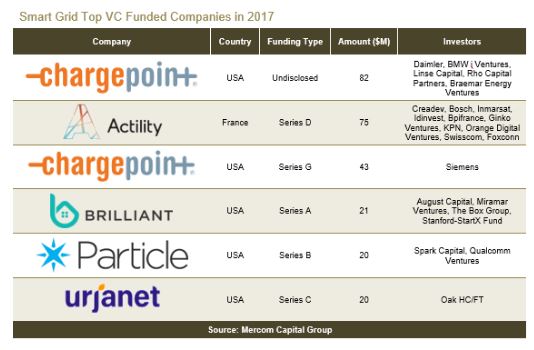2017年,智能電網(wǎng)企業(yè)共有5筆債務(wù)和公共市場融資,總計達到7.74億美元,去年同期為2.24億美元。但今年沒有智能電網(wǎng)企業(yè)實現(xiàn)IPO。