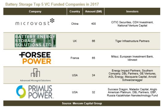 2017全球電池儲能企業(yè)風投7.14億美元 下游企業(yè)獲得融資最多
