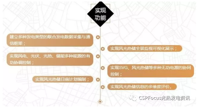 該項目旨在將風電、光伏、光熱和儲能結合起來,形成風、光、熱、儲多種能源的優(yōu)化組合,以有效解決用電高峰期和低谷期電力輸出的不平衡問題,提高能源利用效率,優(yōu)化新能源電力品質,增強電力輸出功率的穩(wěn)定性,提升電力系統(tǒng)消納風電、光伏發(fā)電等間歇性可再生能源的能力和綜合效益。