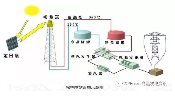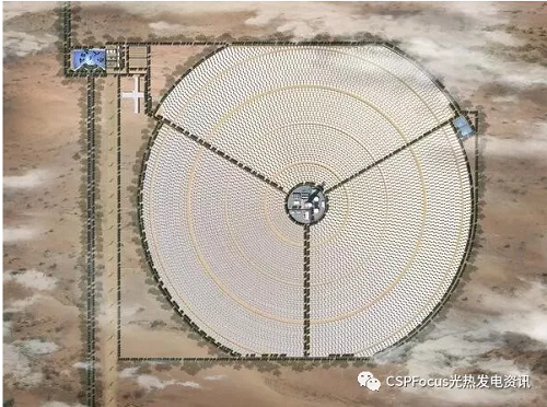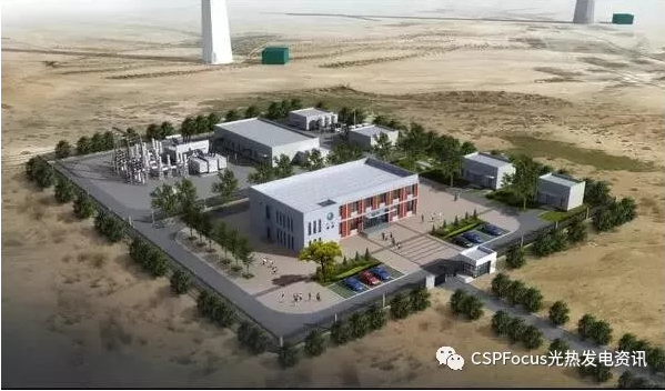光熱電站位于光伏電站南側,采用塔式熔鹽技術,儲熱時長為12小時。