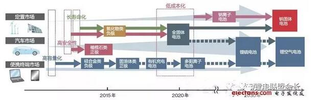 目前推進(jìn)的材料開發(fā)的目標(biāo)是,2020年在確保安全性的同時(shí)使能量密度達(dá)到300Wh/kg。2030年使Li-S電池和鋰空氣電池等500Wh/kg以上的新一代電池實(shí)現(xiàn)實(shí)用化。