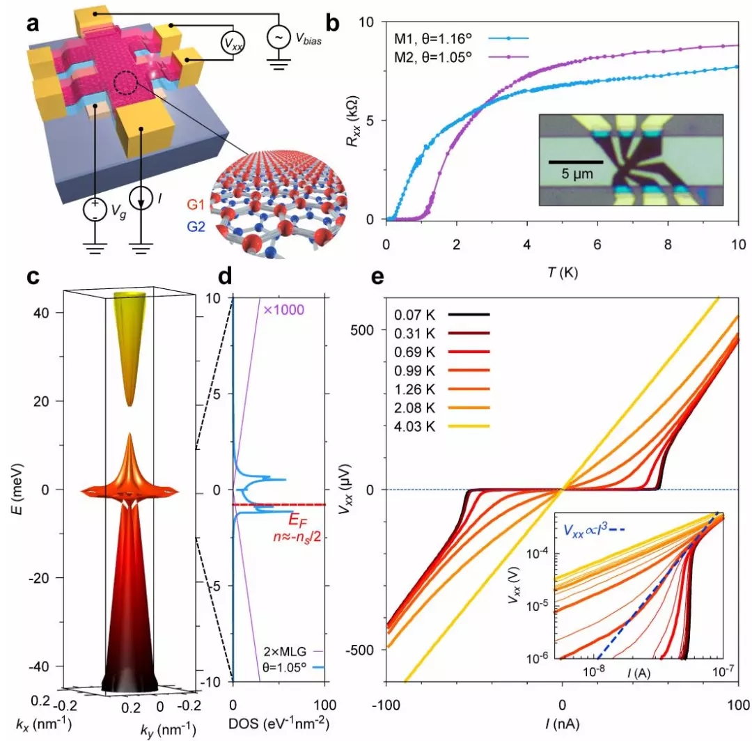 圖2.扭曲雙層石墨烯中的電子能帶結(jié)構(gòu)