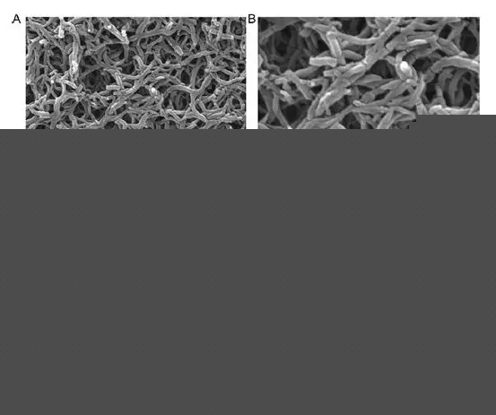 (a-b):不同放大倍數(shù)下聚苯胺正極材料SEM圖