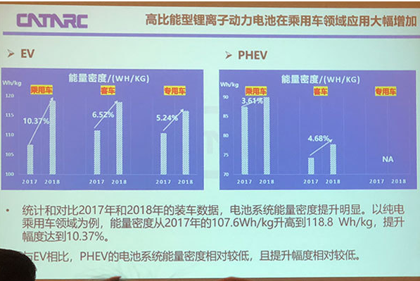 在2018年的裝車數(shù)據(jù)中,電池系統(tǒng)的能量密度較2017年有明顯提升,純電動乘用車能量密度從107.6Wh/kg升高到118.8Wh/kg,提升幅度達到10.37%,并且受到單體能量密度的快速提升以及成組技術(shù)進步的影響,2015-2018年電池系統(tǒng)的能量密度的提升幅度越來越大。
