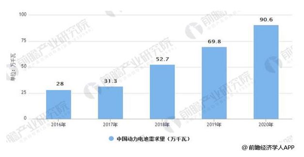 動(dòng)力電池需求量在下游新能源車放量、單車帶電量提升的雙輪驅(qū)動(dòng)下,未來市場需求量將迎來迅速增長。