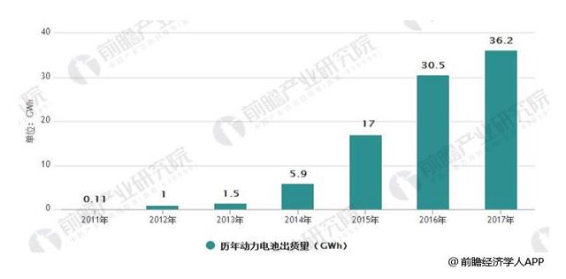 中國歷年動(dòng)力電池出貨量