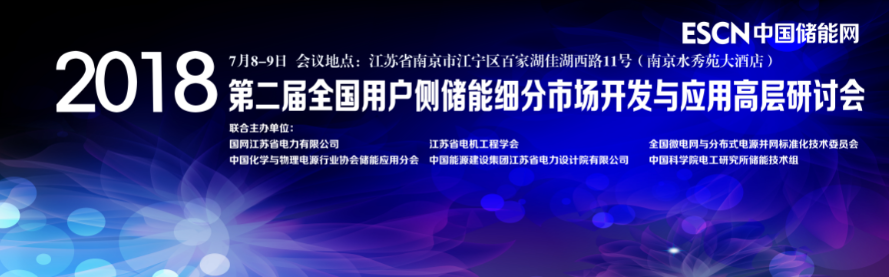 中國化學(xué)與物理電源行業(yè)協(xié)會儲能應(yīng)用分會決定聯(lián)合國網(wǎng)江蘇省電力有限公司、江蘇省電機(jī)工程學(xué)會、全國微電網(wǎng)與分布式電源并網(wǎng)標(biāo)準(zhǔn)化技術(shù)委員會、中國能源建設(shè)集團(tuán)江蘇省電力設(shè)計(jì)院有限公司于2018年7月8—9日在江蘇省南京市召開“第二屆全國用戶側(cè)儲能細(xì)分市場開發(fā)和應(yīng)用高層研討