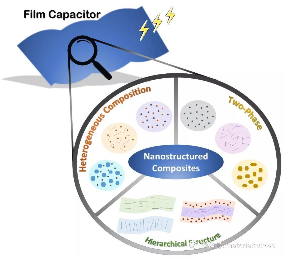 近日,美國賓夕法尼亞州立大學(xué)材料科學(xué)與工程系QingWang教授課題組與西安交通大學(xué)電力設(shè)備電氣絕緣國家重點(diǎn)實(shí)驗室彭宗仁教授課題組合作,系統(tǒng)地評述了鐵電聚合物基納米復(fù)合電介質(zhì)在高能量密度電容儲能領(lǐng)域的最新研究進(jìn)展并對該領(lǐng)域未來的發(fā)展趨勢進(jìn)行了展望。文章系統(tǒng)化地介紹了具有零維、一維和二維納米結(jié)構(gòu)填料,表面改性納米填料,定向和分層結(jié)構(gòu)納米填料以及多種納米填料共同摻雜的鐵電聚合物基納米電介質(zhì)的制備方法,對電容儲能薄膜中不同納米結(jié)構(gòu)對材料的介電常數(shù)與損耗、擊穿強(qiáng)度、儲能密度與效率等性能的綜合影響進(jìn)行了總結(jié)、分析與討論。