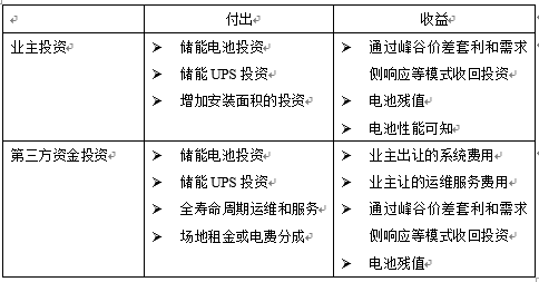 當(dāng)數(shù)據(jù)中心想做成儲能型的數(shù)據(jù)中心,其投資模式亦可發(fā)展改變。如果建設(shè)數(shù)據(jù)中心的業(yè)主愿意投資,則可以投資并獲得全部收益;如果業(yè)主覺得看不清楚趨勢,尚有風(fēng)險,亦可由第三方資本進行投資,做合同能源管理(EMC),具體的投資收益分成,業(yè)主可以和第三方資本協(xié)商。筆者通過下表簡單分析了分別由業(yè)主自己投資和第三方資本投資各自所付出的以及所得到的回報,供大家參考,不排除未來更靈活的收益模式或更豐富的合作模式!