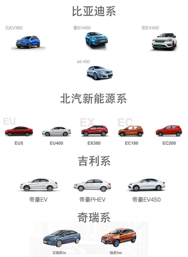 除e6和插混車型外的比亞迪全系,北汽新能源全系(EC180部分車型不算)、吉利帝豪新能源、奇瑞艾瑞澤5e和瑞虎3xe等,都采用了三元鋰電池作為動(dòng)力電池組。