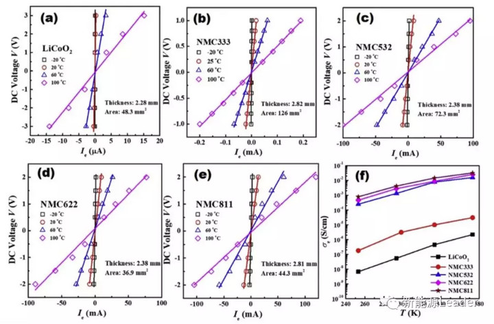 通常而言提升動(dòng)力電池倍率性能主要是從材料的選擇上入手,例如我們之前曾在文章《離子導(dǎo)電、電子導(dǎo)電傻傻分不清楚?你想知道的都在這里!》介紹過目前常見的高鎳三元材料與傳統(tǒng)的鈷酸鋰材料的離子和電子電導(dǎo)率對(duì)比【1】,常溫20℃下,LCO材料的電子電導(dǎo)率最低僅為5x10-8S/cm,而NCM111材料電子電導(dǎo)率可達(dá)2.2x10-6S/cm,隨著鎳含量的進(jìn)一步提高,三元材料的電子電導(dǎo)率也明顯提高,NCM8111材料的電子電導(dǎo)率更是達(dá)到4.1x10-3S/cm,離子電導(dǎo)率方面也表現(xiàn)出了同樣的趨勢(shì),LCO材料在20℃下,離子電導(dǎo)率僅為2.3x10-7S/cm,而NCM111材料離子電導(dǎo)率為3.2x10-6S/cm,NCM532位1.7x10-3S/cm,NCM622位3.4x10-3S/cm,NCM811材料更是達(dá)到了6.3x10-3S/cm,因此無論是從電子電導(dǎo)率還是離子電導(dǎo)率上來看三元材料,特別是高鎳三元材料或者NCA材料都更加適合倍率型鋰離子電池,當(dāng)然除了材料的這些本征特性外,其倍率性能還受到形貌等多重因素的影響,例如小顆粒的材料表面積更大,Li+在顆粒內(nèi)部的擴(kuò)散距離更短,因此理論上會(huì)具有更好的倍率性能。