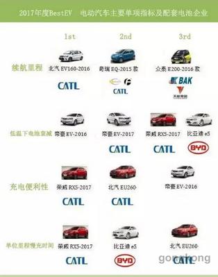 2017年最優(yōu)電動(dòng)汽車排名及上榜車型配套動(dòng)力電池公司