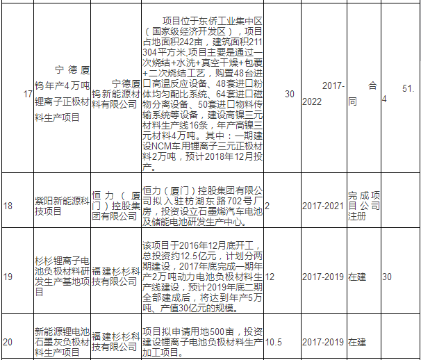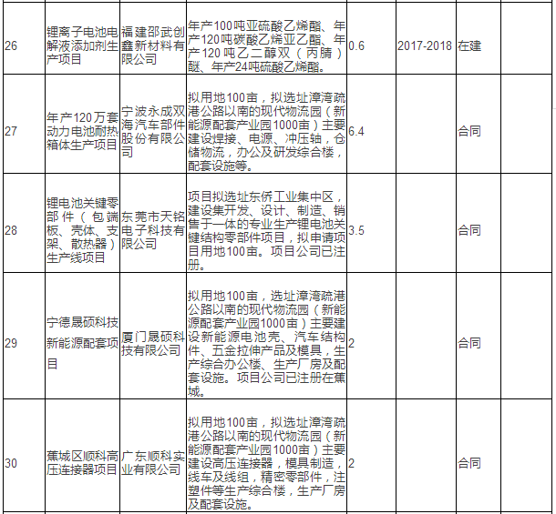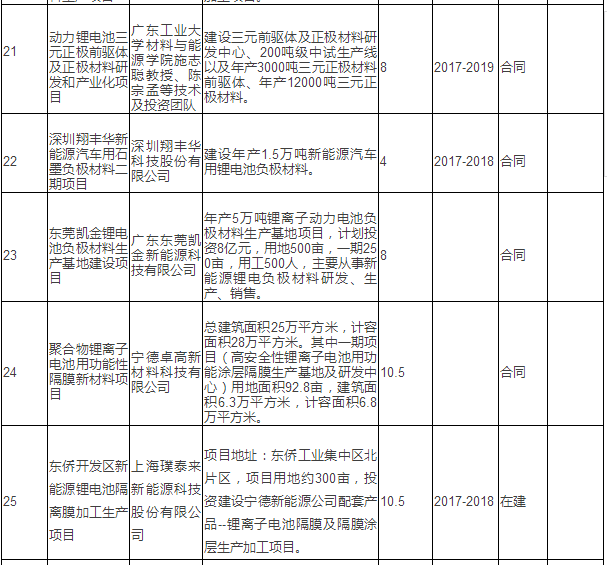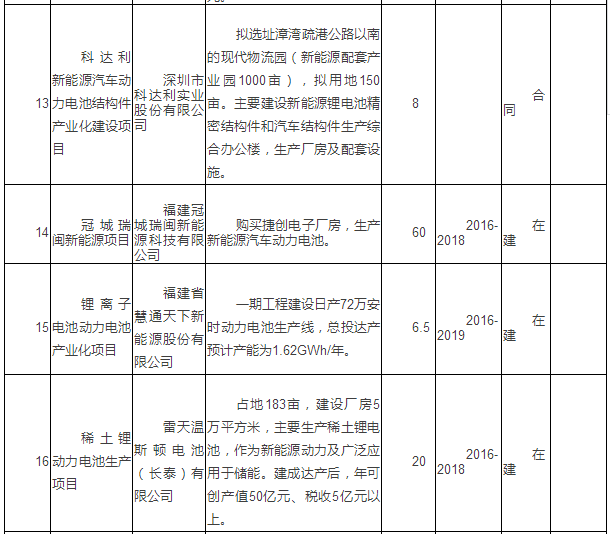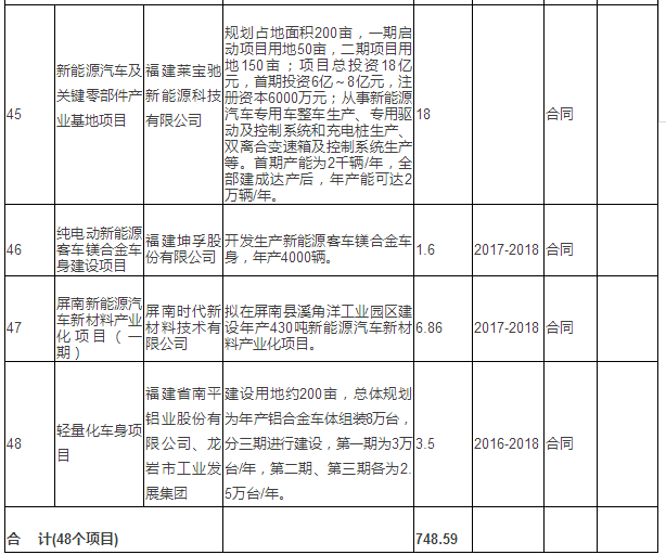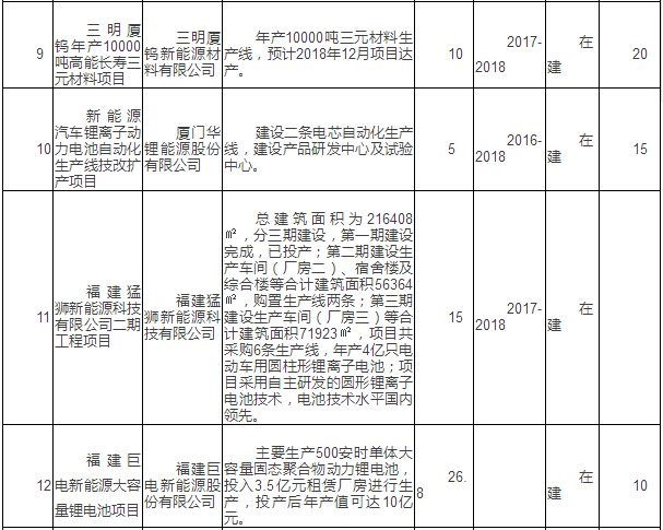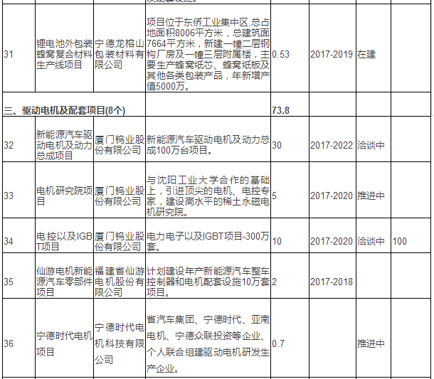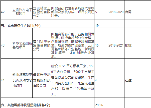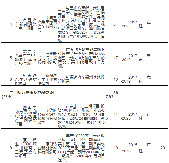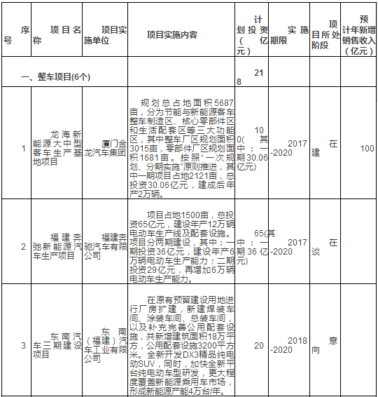 新能源汽車產(chǎn)業(yè)重點(diǎn)項(xiàng)目表