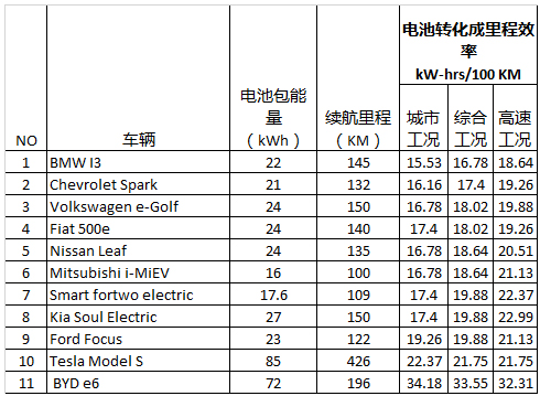 這個表是用EPA的工況法來衡量的,原數(shù)據(jù)是100英里對應(yīng)各個工況下的耗能,進(jìn)一步通過折算到100公里的耗電數(shù)量,這個數(shù)據(jù)也是考慮了車輛的各種使用條件下的耗能。