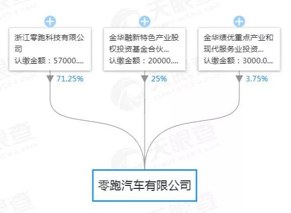 零跑科技認(rèn)繳資金5.7億,占股71.25%。而金華融新特色產(chǎn)業(yè)股權(quán)投資基金和金華績優(yōu)重點(diǎn)產(chǎn)業(yè)服務(wù)業(yè)投資管理合伙企業(yè),都是券商+地方投資的組合。后兩家企業(yè)投入認(rèn)繳的注冊(cè)資金總共2.3億元。三方實(shí)際出資額不詳。