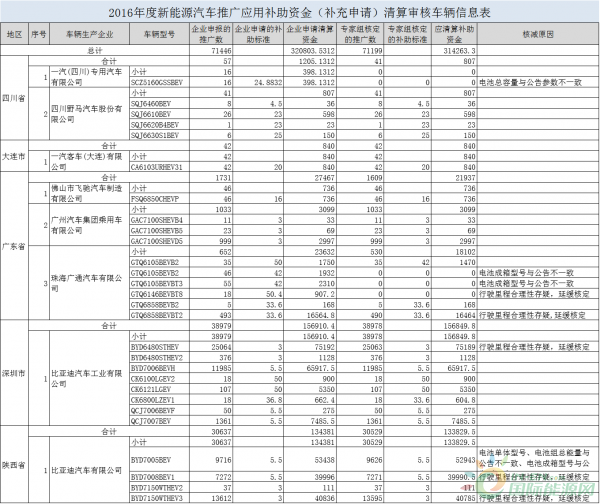 2017年9月7日,工信部公示2016年度新能源汽車推廣應用補助資金(補充申請)初步審核情況,根據(jù)公示情況,多家企業(yè)因產(chǎn)品不一致性導致補貼核減或者延緩核定?! ?016年度新能源汽車推廣應用補助資金(補充申請)
