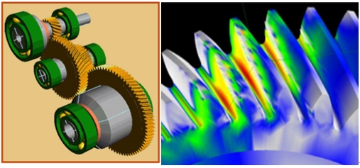 從結(jié)構(gòu)上看,eDM電驅(qū)模塊右側(cè)體積較大部分為電機(jī)(如上圖所示),左側(cè)經(jīng)過固定傳動(dòng)比齒輪后將動(dòng)力傳遞到差速器,再由差速器分配到兩側(cè)車輪。模塊使用了高精度螺旋齒輪,齒輪采用斜齒設(shè)計(jì),齒型改進(jìn)后嚙合總重合度>4,更低的齒隙使噪音有效降低。同時(shí),通過表面拋光減少閃點(diǎn)溫度,進(jìn)一步提升高速性能,實(shí)現(xiàn)齒輪部分傳遞效率>97%。