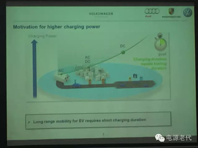 未來的方向是往高電壓、大功率方向走,歐洲車企很早就提出了這個方向,下面是大眾公司的路標(biāo):