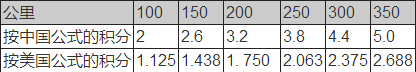 如百公里每減排2kg或3kgCO2給積分1分,積分見下表: