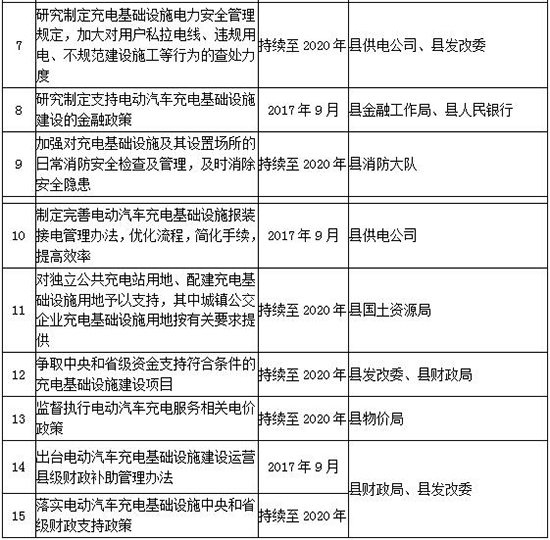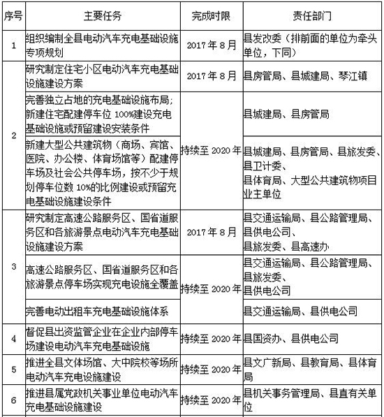 在不影響正常運(yùn)營的前提下,鼓勵具備安全條件的加油站、加氣站建設(shè)充電基礎(chǔ)設(shè)施;全縣公用充電樁與電動汽車比例不低于1︰15,縣城主城區(qū)按服務(wù)半徑每6公里建設(shè)1座公共充電站;高速公路服務(wù)區(qū)、國省道服務(wù)區(qū)和各旅游景點(diǎn)力爭到2020年實現(xiàn)充電設(shè)施全覆蓋;專用充電設(shè)施根據(jù)服務(wù)對象充電能力需求,按需配建;自用充電設(shè)施按照充電樁與電動汽車1︰1的比例配置。