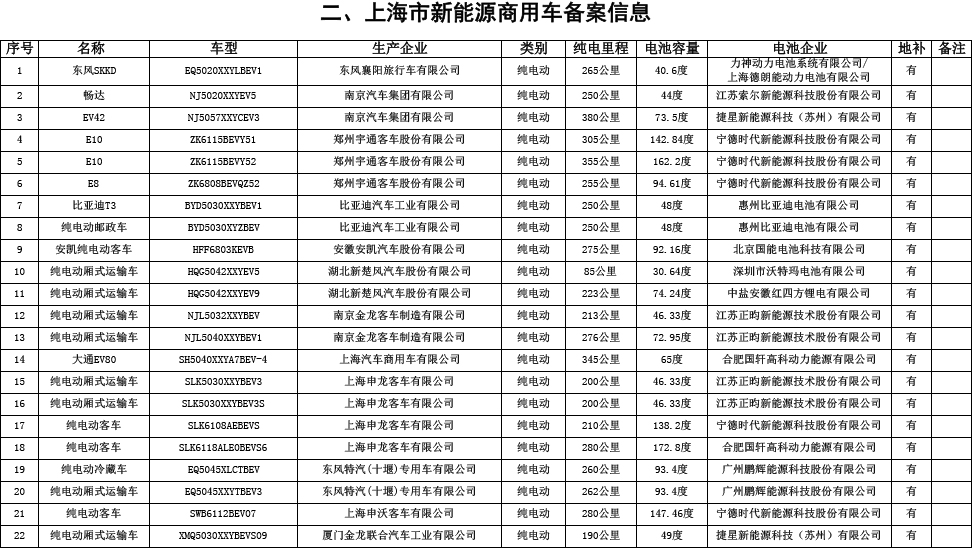 上海經(jīng)信委發(fā)布9月份新能源汽車備案目錄