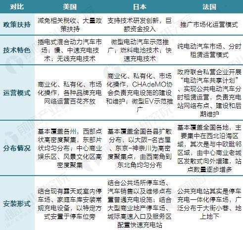 在國家政策方面,美國主要的是以減免稅收和政策扶持為主;日本已巨額資金投入、支持技術研發(fā)創(chuàng)新為主;而法國則是以推廣市場化運營模式為主,例如通過推動電動汽車租賃Autolib項目帶動充電樁建設。