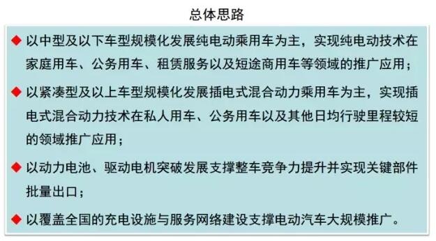 在應(yīng)用領(lǐng)域上,中型及以下車型規(guī)?;l(fā)展純電動乘用車為主,實現(xiàn)純電動技術(shù)在家庭用車、公務(wù)用車、租賃服務(wù)以及短途商用車等領(lǐng)域的推廣應(yīng)用;以緊湊型及以上車型規(guī)?;l(fā)展插電式混合動力乘用車為主,實現(xiàn)插電式混合動力技術(shù)在私人用車、公務(wù)用車以及其他日均行駛里程較短的領(lǐng)域推廣應(yīng)用,以動力電池、驅(qū)動電機突破發(fā)展支撐整車競爭力提升并實現(xiàn)關(guān)鍵部件批量出口,以覆蓋全國的充電設(shè)施與服務(wù)網(wǎng)絡(luò)建設(shè)支撐電動汽車大規(guī)模推廣。