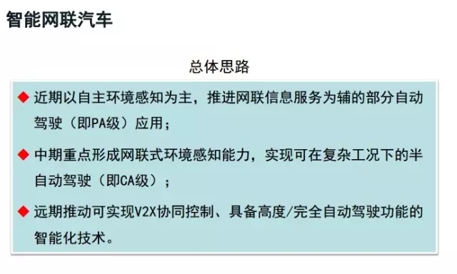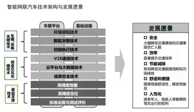 智能網(wǎng)聯(lián)汽車技術(shù)路線重點在于開展以環(huán)境感知技術(shù),高精度定位與地圖,車載終端機人機接口(HMI)產(chǎn)品,集成控制及執(zhí)行系統(tǒng)為代表的關(guān)鍵零部件技術(shù)研究,開展以多源信息融合技術(shù),車輛協(xié)同控制技術(shù),通信與信息交互平臺技術(shù),電子電氣架構(gòu),信息安全技術(shù),人機交互與共駕駛技術(shù),道路基礎(chǔ)設(shè)施,標準法規(guī)等為代表的共性關(guān)鍵技術(shù)研究。