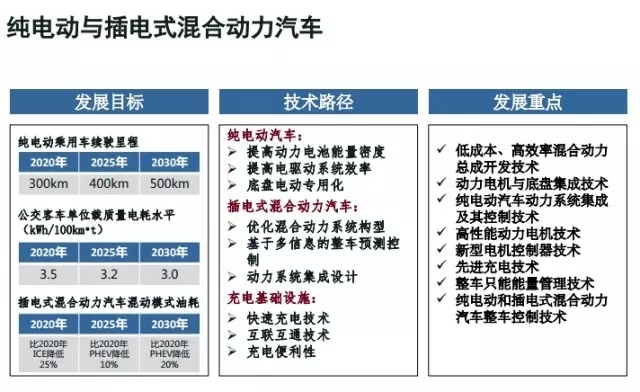 純電動和插電式混合動力汽車技術(shù)路線重點在于:為了實現(xiàn)純電動汽車和插電式混合動力汽車的大批量市場推廣,形成完善的整車、關(guān)鍵總成生產(chǎn)體系和社會生態(tài)環(huán)境;以降低整車成本、提升整車技術(shù)先進性為目標、突破先進驅(qū)動電機和動力電池等關(guān)鍵零部件開發(fā)技術(shù),加快充電設(shè)備技術(shù)研究以充電基礎(chǔ)設(shè)施推廣普及。
