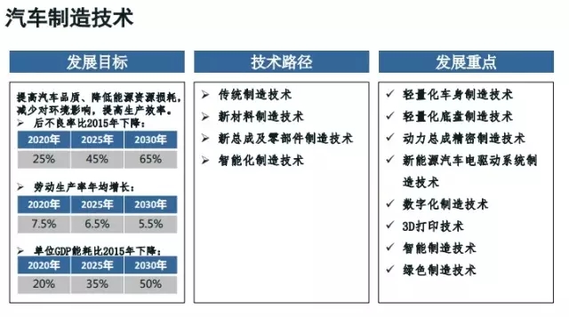 汽車制造技術(shù)路線圖以“綠色制造,智能制造,優(yōu)質(zhì)制造,快速制造”為發(fā)展主線,全面提質(zhì)增效降耗,以鋁鎂合金和碳纖維復(fù)合材料為重點,逐步掌握輕量化材料制造技術(shù),以動力總成及新能源汽車電驅(qū)動系統(tǒng)為突破口,顯著提升軸、齒等零部件的加工制造技術(shù),實現(xiàn)制造裝備的數(shù)字化、智能化。