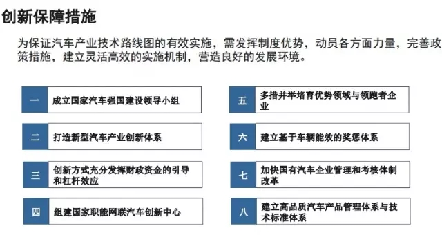 汽車產(chǎn)業(yè)規(guī)模大,關(guān)聯(lián)行業(yè)多,且是眾多產(chǎn)業(yè)技術(shù)創(chuàng)新的集合體。有效實施汽車產(chǎn)業(yè)技術(shù)路線圖,推動汽車產(chǎn)業(yè)由大變強,必須發(fā)揮制度優(yōu)勢,動員各方面力量,完善政策措施,建立靈活高效的實施機制,營造良好的發(fā)展環(huán)境。