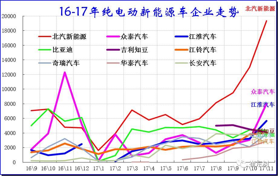 17年純電動(dòng)新能源車(chē)企業(yè)的表現(xiàn)較強(qiáng),尤其是以北汽和江淮等主力國(guó)企的新能源表現(xiàn)較強(qiáng)。民企的眾泰也是表現(xiàn)較優(yōu)秀。