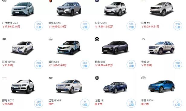 據(jù)統(tǒng)計,目前國產(chǎn)電動SUV比亞迪宋EV300、江淮iEV6E、野馬EC70、北汽EX200、傳祺GE3、卡威EV1、榮威ERX5、華泰XEV260、北汽EX260、陸地方舟V5、長安CS15EV的售價分別為26.59萬元、5.95-12.85萬元、24.98萬元、21.69萬元、24.60萬元、22.80萬元、22.38-29.68萬元、27.28萬元、20.29萬元、7.08-7.28萬元和18.94-19.64萬元;續(xù)航里程分別為300公里、170公里、250公里、200公里、310公里、250公里、320公里、266公里、250公里、160公里和300公里。