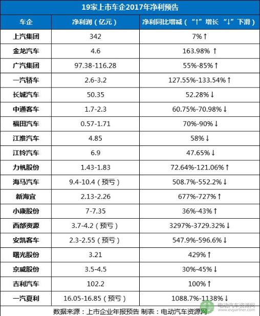 原標題:誰賺誰虧?19家上市車企年報預告及2018年新能源規(guī)劃前瞻