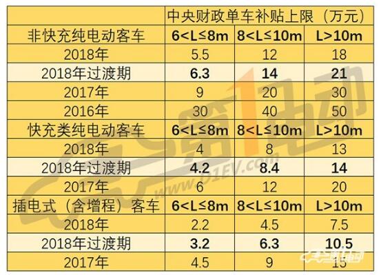 對于新能源客車來說,過渡期上牌的補貼金額均高于2018年補貼調(diào)整后的金額。