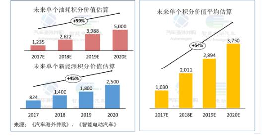 結(jié)合單個(gè)油耗積分價(jià)值和單個(gè)新能源積分價(jià)值的平均,我們大略估算一個(gè)積分的平均價(jià)值從2017年的1000元逐漸上漲到2020年的3800元左右。