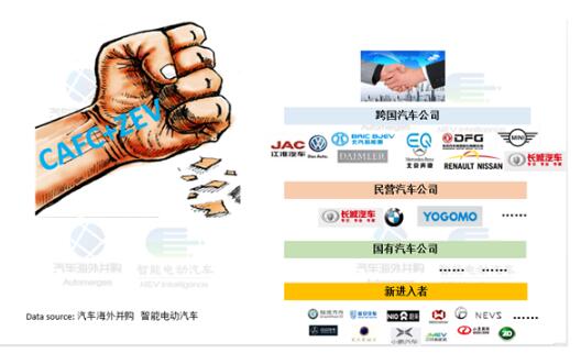 而以北汽新能源、長(zhǎng)江汽車(chē)、奇瑞新能源、江鈴新能源、云度、知豆、蔚來(lái)、威馬、小鵬等為代表的已經(jīng)獲得獨(dú)立新建純電動(dòng)生產(chǎn)資質(zhì)的企業(yè)或通過(guò)其他途徑過(guò)得資質(zhì)的造車(chē)新勢(shì)力,以及其他新能源資質(zhì)的申請(qǐng)者如特斯拉、FMC、博郡、唐駿、河南森源、時(shí)風(fēng)、車(chē)和家、游俠、小鵬、奇點(diǎn)、力帆、比克、云南德動(dòng)、昌河、上汽通用五菱等等,則會(huì)成為包括國(guó)有企業(yè)和跨國(guó)公司在內(nèi)各方合縱連橫、投資、代工、并購(gòu)等的潛在對(duì)象。