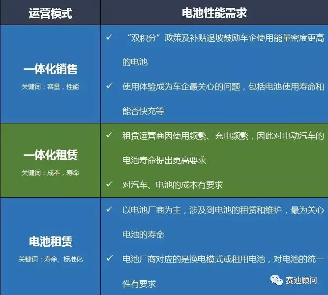 在多樣化的運(yùn)營(yíng)模式和使用場(chǎng)景對(duì)電池性能也提出了不同要求。一體化銷售的運(yùn)營(yíng)模式以車企主導(dǎo)為特點(diǎn),更關(guān)注電池的容量和性能;一體化租賃則以第三方運(yùn)營(yíng)商主導(dǎo),對(duì)電池成本和壽命提出了更高要求;電池租賃以電池廠商為主導(dǎo),要求電池的壽命更長(zhǎng)、一致性和標(biāo)準(zhǔn)化程度更高。