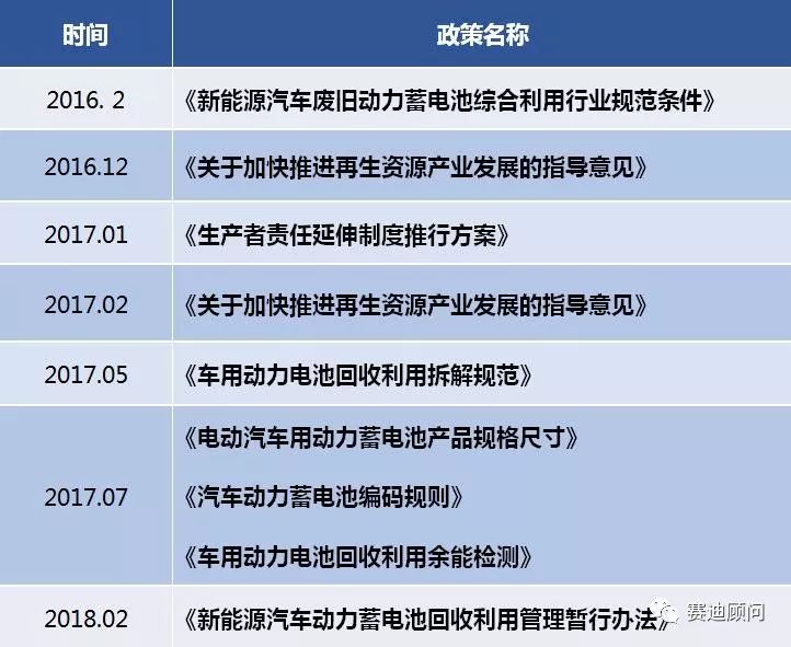 2018年2月26日,工信部等七部委聯(lián)合發(fā)布《新能源汽車動(dòng)力蓄電池回收利用管理暫行辦法》,從政策層面推動(dòng)動(dòng)力電池生命周期后期的循環(huán)利用和