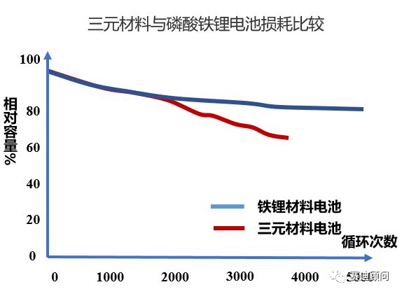 電池使用一段時(shí)間后都會(huì)有所損耗,從單體電池來(lái)看,三元電池?fù)p耗更快,磷酸鐵鋰電池在使用2000次后在很長(zhǎng)的一段時(shí)間內(nèi)都相對(duì)穩(wěn)定,20000次后都能夠保持65%以上的電池容量。由此,磷酸鐵鋰電池具有更廣闊的梯次利用市場(chǎng)。