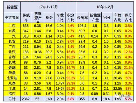 根據(jù)測算17年1-12月新能源汽車積分比例占比達6 8%,18年1-2月達到5 2%,這也是很好的表現(xiàn)。由于18年1-2月的的新能源車銷量大幅提升,18年1-