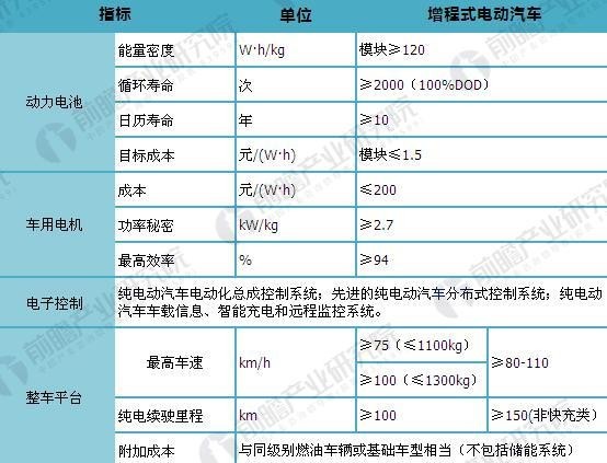 圖表1:增程式電動(dòng)汽車主要技術(shù)指標(biāo)