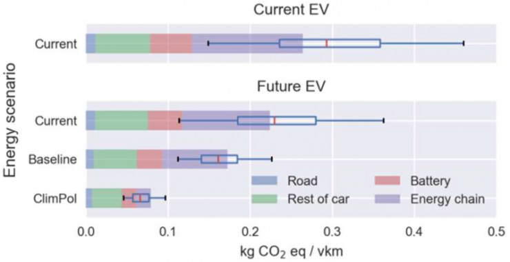對(duì)電動(dòng)汽車等未來技術(shù)進(jìn)行生命周期評(píng)估(LCA)時(shí),通常假設(shè)用于基礎(chǔ)設(shè)施生產(chǎn)的背景數(shù)據(jù)庫(kù)是恒定的,并且未來的電力組合只需要考慮直接消費(fèi)。我們發(fā)現(xiàn),在計(jì)算電動(dòng)汽車生產(chǎn)的上游影響時(shí),若忽略未來電力系統(tǒng)的改善,會(huì)使結(jié)果的二氧化碳當(dāng)量改變23-52克每公里,這種錯(cuò)誤明顯超過ClimPol(德國(guó)IASS研究所的氣候變化和空氣污染項(xiàng)目)場(chǎng)景規(guī)定的兩個(gè)標(biāo)準(zhǔn)差。因此,尤其將來使用可再生電力為電動(dòng)汽車充電的情況下,考慮電力行業(yè)的發(fā)展極為重要。