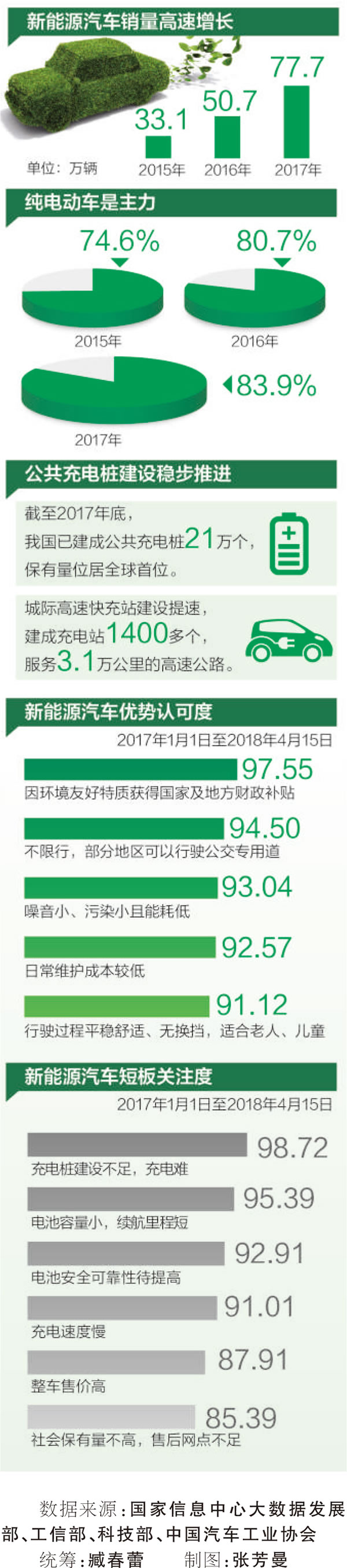 我國已經連續(xù)三年位居全球新能源汽車產銷第一大國。從市場增速、產業(yè)鏈成熟度、投資熱度等指標衡量,新能源汽車已成為近年來我國戰(zhàn)略性新興產業(yè)的一道亮麗風景。但隨著行業(yè)競爭不斷加劇,財政補貼的技術門檻日益增高,新能源汽車的高增長能否持續(xù)?充電基礎設施建設怎樣適應消費者的期待?