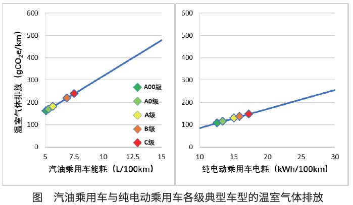 溫室氣體排放因子:汽油乘用車為152g/km,純電動(dòng)乘用車為0。