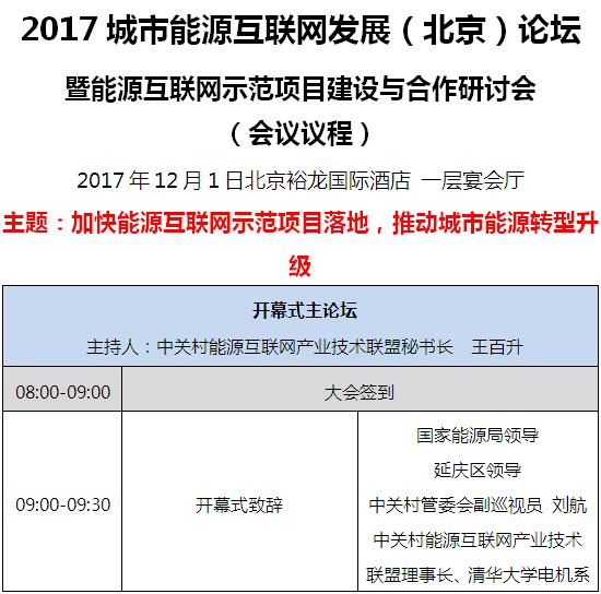 2017城市能源互聯(lián)網(wǎng)發(fā)展(北京)論壇暨能源互聯(lián)網(wǎng)示范項(xiàng)目建設(shè)與合作研討會(huì)將于2017年12月1日(明天)在北京裕龍國(guó)際酒店一層宴會(huì)廳舉辦。本次論壇及研討會(huì)的主題是加快能源互聯(lián)網(wǎng)示范項(xiàng)目落地,推動(dòng)城市能源轉(zhuǎn)型
